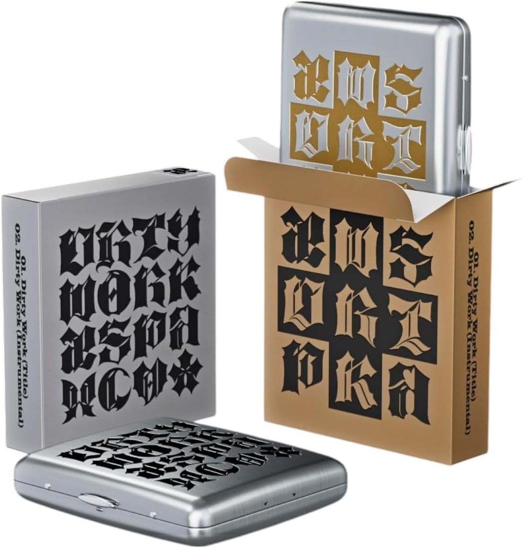 Kpop Fancy presents the aespa Single Album [Dirty Work] Dirty Case Version (SILVER), a stylish collectible made for fans who want to enjoy the group’s bold new concept. Inside the box, you’ll find a uniquely designed tin case, a 28-page photobook, a mini CD-R, a folding panel card, a set of 8 stickers, 1 cubic sticker, and two types of photocards (A and B), each randomly selected from 4 designs. Every item arrives brand-new in unopened, sealed packaging straight from the manufacturer, giving you a complete and authentic collector’s set.
