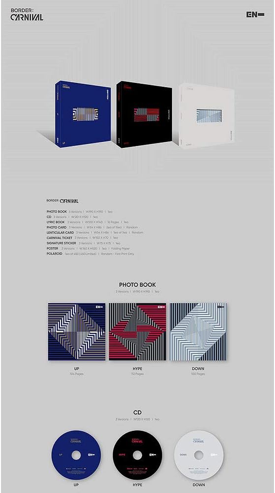 Specification: ENHYPEN – BORDER : CARNIVAL (2nd Mini Album) Album+Extra Photocards Set (HYPE ver.) ys/m