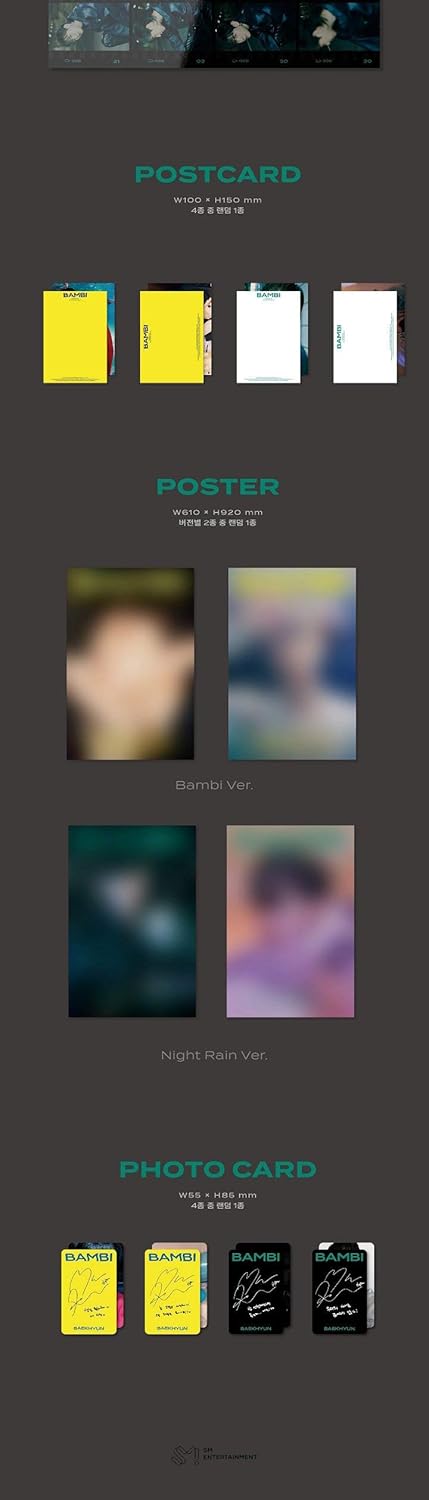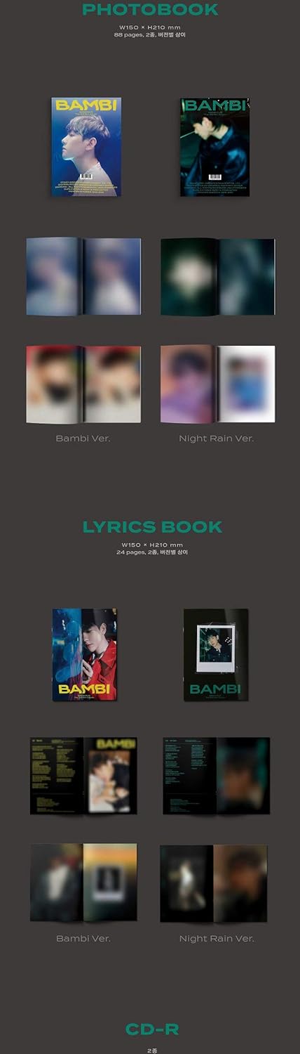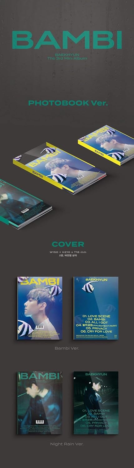 EXO Baekhyun Bambi 3rd Mini Album PhotoBook Version Night Rain Cover CD+2p Folding Poster+88p PhotoBook+24p Lyrics Book+Clear Card+1p Film+1p Post+PhotoCard+Tracking