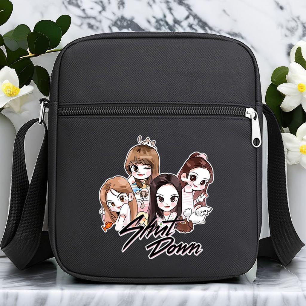 Korean Black K-pop Pink Shut Down Merch Crossbody Bag Handbag for Women