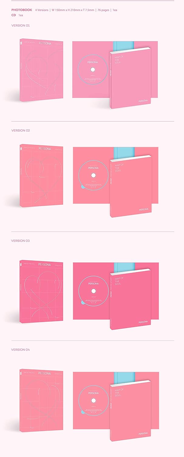 Hey ARMY! Get ready to dive into the world of “MAP OF THE SOUL : PERSONA,” the album that’s like, totally iconic! Just like their previous albums, this one comes in four unique versions, each a different flavor of awesome. Think of them like collectible trading cards, but way cooler! Each version, mirroring the size of “The Tear,” is packed with goodies! Inside, you’ll discover a CD, a photobook (150 x 210 x 7.5mm/ 76page) to feast your eyes on, a mini book (90 x 27mm/ 20page) filled with behind-the-scenes peeks, and a random postcard (80 x 120mm) – fingers crossed you get your bias! Plus, you might even snag a super rare clear photo picket (limited and random, so good luck!), a photo film, and a poster (620 x 448mm, random 1 out of 4 versions). Each version has specific content, making it a unique experience! What are you waiting for? Collect them all!