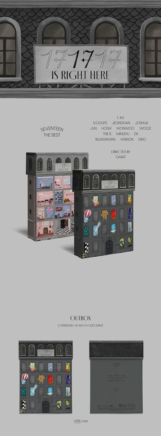 Hey Carats! Get ready to unwrap the magic with SEVENTEEN’s “17 IS RIGHT HERE” Best Album! This isn’t just an album; it’s a whole experience! Inside this SVT HERE Version, you’ll find a treasure trove of goodies: a cool Outbox to protect everything, the CD with all the amazing tracks, a poster that’s folded right in the pack, a Photo Book packed with 88 pages of stunning visuals, a 44-page Archiving Book, a 28-page Lyric Book so you can sing along, a Team Photo Book with 12 pages of group shots, plus 13 Photo Cards and 2 random Photo Cards – who will you get? This album officially drops on April 29th, 2024. Each purchase helps SEVENTEEN climb the HANTEO & GAON charts, and comes with a tracking number. Remember, contents can differ slightly depending on the version, so prepare for a delightful surprise! Are you ready to dive in?