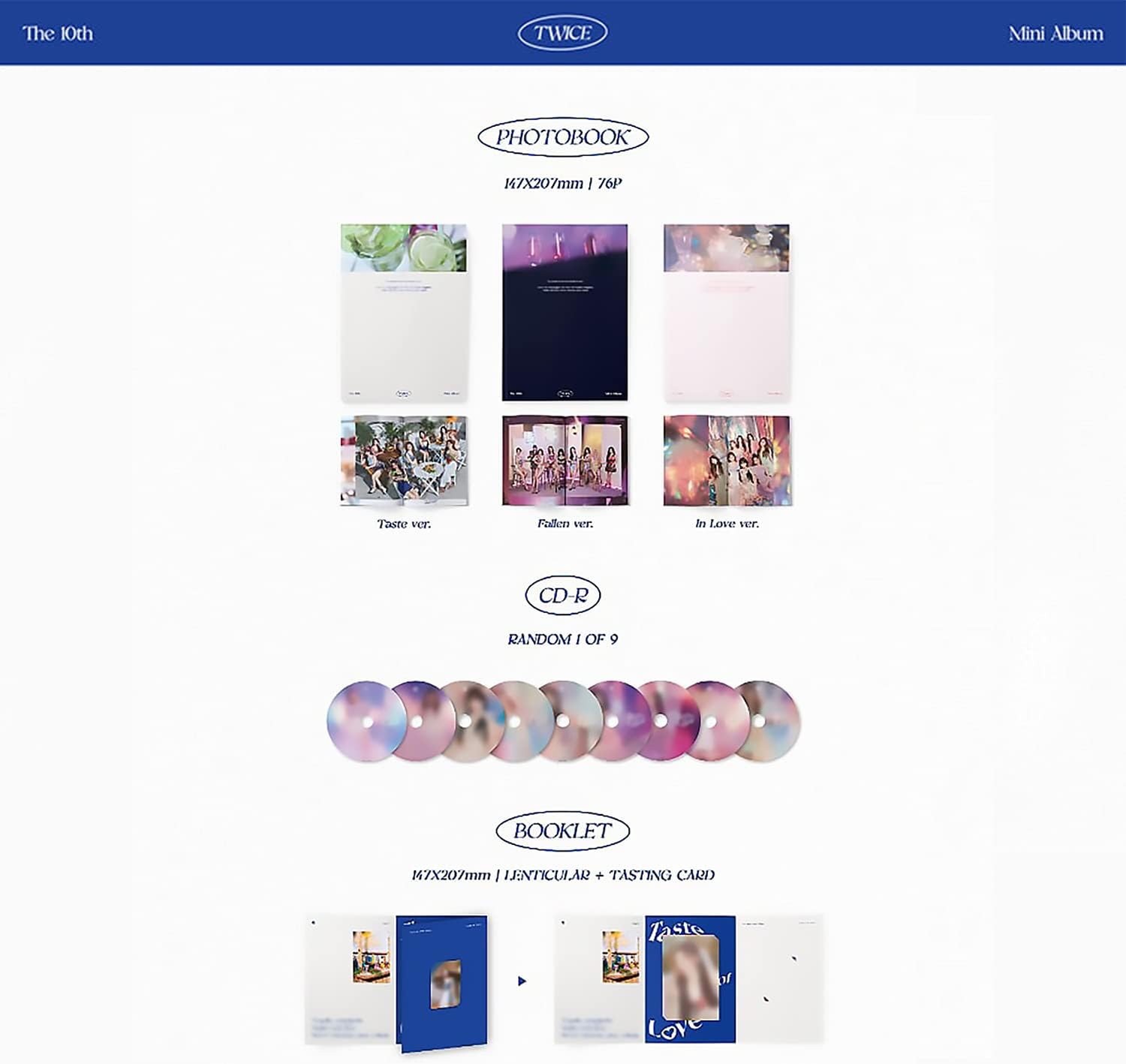 ![TWICE - 10th Mini Album [Taste of Love] (In Love Ver.) Cover + Sleeve + Photobook + CD-R + Lenticular + Tasting Card + Coaster + Photocard + 2 Pin Button Badges](https://www.kpopfancy.com/wp-content/uploads/2025/11/TWICE-10th-Mini-Album-Taste-of-Love-In-Love.jpg)