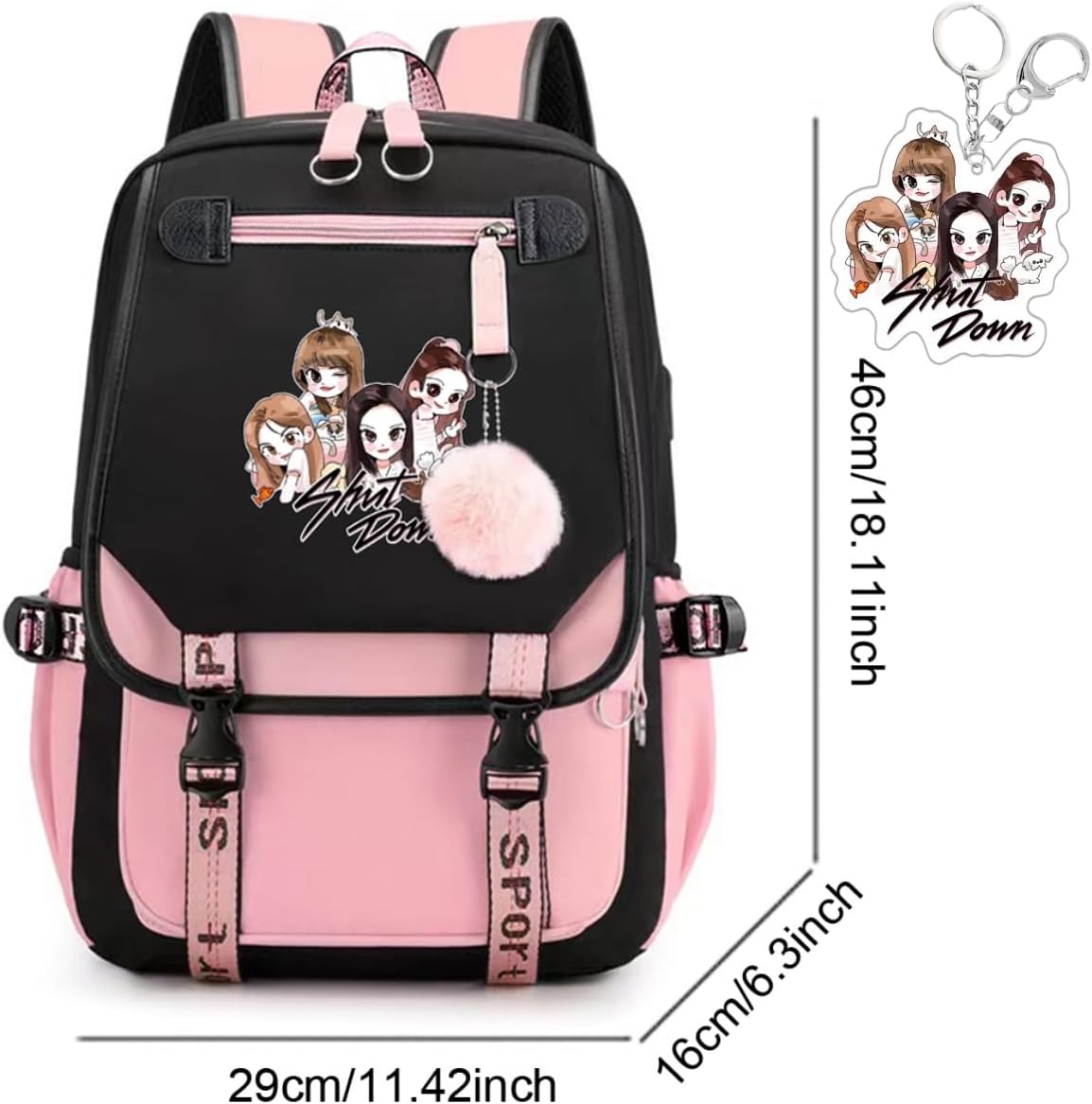Hey Kpop Fancy fam! Check out our must-have USB Black Backpack Pink Shut Down Korean Casual Backpack Daypack Laptop Bag College Bag (B1)! Made from super durable, high-quality nylon, this backpack is built to last. It measures 17.8 x 11.9 x 8.28 inches – perfect for carrying all your essentials. The adjustable, padded shoulder straps make it comfy to wear, even when it’s packed full. Plus, you get a bonus! Inside you will find a plush ball along with a USB and extension cord so you can keep your devices charged on the go. Are you a Kpop Fashion Fan? This is the best gift for you or any woman in your life. Don’t miss out on this awesome backpack – you won’t regret it!
